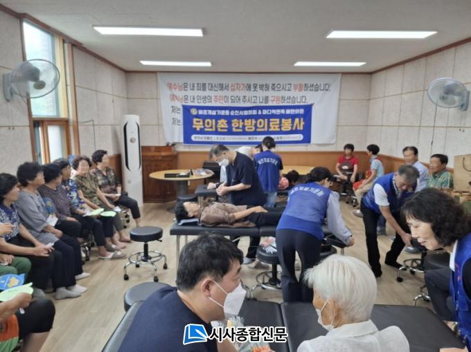 ºñÁ¼Àº ¸¶À» ȸ°ü ´ë½Å ¿ë¸²±³È¸ ¿¹¹è´çÀ» ºô·Á ³Ð°í ÄèÀûÇÑ °÷¿¡ Àӽà Áø·á¼Ò¸¦ ¸¶·ÃÇϰí, ¹èÁø¼® ¹èÇÑÀÇ¿øÀå, Á¶±Ô¼º °æÈñ´ëÇÑÀÇÇйڻç, À̺´ÁÖ °Áø´Ù»êÇÑÀÇ¿øÀåÀÌ Çѹæ ħ Ä¡·á, ¶ä, ºÎÇ×Ä¡·á, ÇѾູ¾àÁöµµ, ¿©¸§Ã¶ °Ç°°ü¸® À¯ÀÇ»çÇ× µî ´Ù¾çÇÑ ÇѹæÁø·á¸¦ Á¦°øÇÏ¸ç ¹«´õÀ§¿¡ ÁöÄ£ ¾î¸£½ÅµéÀÇ °Ç°À» »ìÆñ´Ù.