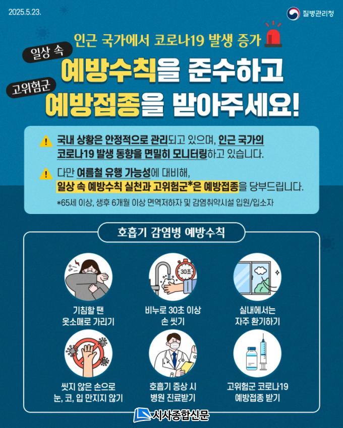 | ȼø±º, ¿©¸§Ã¶ Äڷγª19 Áõ°¡¼¼ È£Èí±â°¨¿°º´ ¿¹¹æ ¼öÄ¢ Áؼö ´çºÎ ¡°¼Õ¾Ä±â¡¤±âħ¿¹Àý¡¤½Ç³»È¯±â µî ¿¹¹æ ¼öÄ¢ ½ÇõÇϼ¼¿ä~¡± |