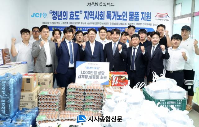 ÀüÁÖJC ÀÌ´ëÇü ȸÀåÀ» ºñ·ÔÇØ ¿À¹Î¼ö ³»¹«ºÎȸÀå, ÀÌÇöÁø ¿Ü¹«ºÎȸÀå°ú ȸ¿ø 20¿© ¸íÀº ¹«´õÀ§ ¼Ó¿¡¼µµ ±¸½½¶¡À» È긮¸ç 200ÀκÐÀÇ »ï°èÅÁ°ú »ýȰÇʼöǰ µî 1õ¸¸ ¿ø »ó´çÀÇ ¹°Ç° ÈÄ¿øÀ» ÅëÇØ »çȸÀûÀ¸·Î Ãë¾àÇÑ µ¶°Å³ëÀε鿡°Ô Áö¿øÇÏ¿´´Ù.