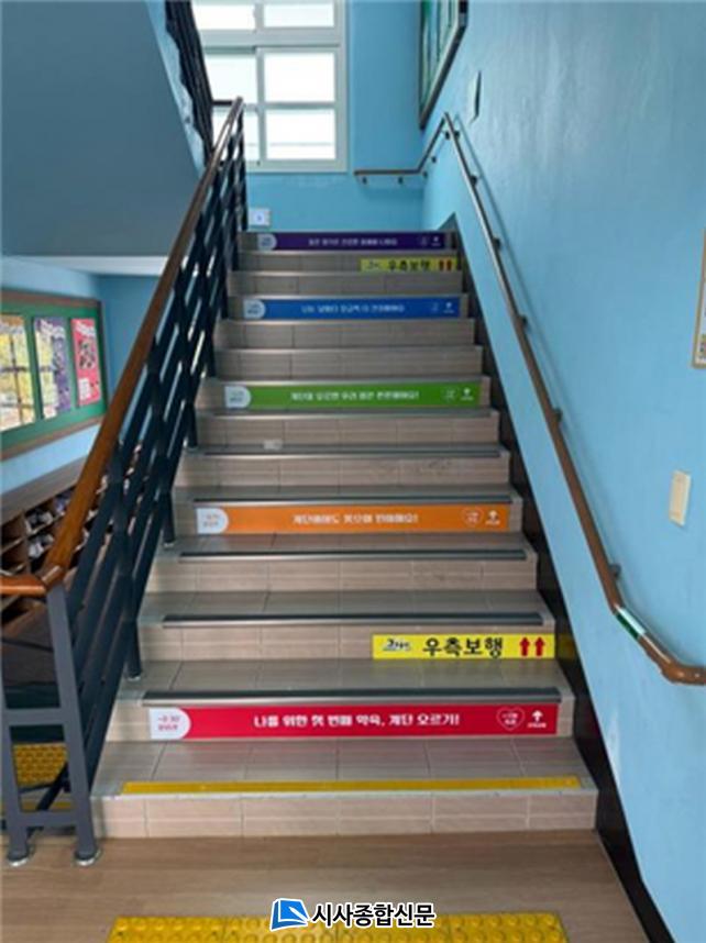°Ç°°è´ÜÀº °È±â ½ÇõÀ» À¯µµÇϱâ À§ÇØ °è´Ü º®¸éÀ̳ª ¹Ù´Ú¿¡ °Ç°°ú °ü·ÃµÈ ±àÁ¤Àû ¸Þ½ÃÁö, ÀÀ¿ø ¹®±¸, °Ç°Á¤º¸ µîÀ» ºÎÂøÇÏ¿´À¸¸ç °èÃþº° Ư¼º°ú »ýȰȯ°æÀ» °í·ÁÇØ ¸ÂÃãÇü ¸Þ½ÃÁö¸¦ Àû¿ëÇÏ¿© ÃʵîÇб³ °è´Ü¿¡´Â ¾Æµ¿ÀÇ ´«³ôÀÌ¿¡ ¸Â´Â ¹à°í Ä£±ÙÇÑ ¹®±¸¸¦ Ȱ¿ëÇØ ÀÚ¿¬½º·´°Ô ½ÅüȰµ¿ÀÌ ÀÌ·ïÁöµµ·Ï ÇÏ¿´°í, »ç¾÷Àå°ú °ø°ø±â°ü °Ç°°è´Ü¿¡´Â Á÷ÀåÀÎÀÇ °Ç°À» À§ÇÑ ±Ý¿¬, ÀýÁÖ, ½ºÆ®·¹½º °ü¸®, °È±â µî ´Ù¾çÇÑ °Ç° ½Çõ ¹®±¸¸¦ »ðÀÔÇØ ¹Ù»Û ÀÏ»ó ¼Ó¿¡¼µµ °Ç°À» ì±æ ¼ö ÀÖµµ·Ï ±¸¼ºÇÏ¿´´Ù.