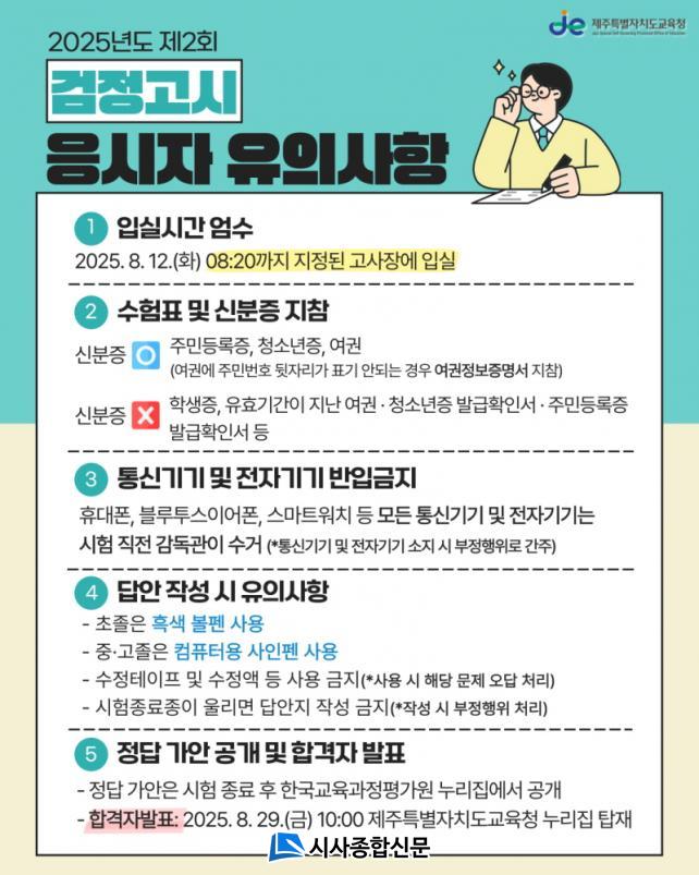 Á¦ÁÖÆ¯º°ÀÚÄ¡µµ±³À°Ã»Àº Áö³ 1ÀÏ ´©¸®Áý¿¡ ½ÃÇè ´çÀÏÀÎ 12ÀÏ ¿ÀÀü 8½Ã 20ºÐ±îÁö ÁöÁ¤µÈ °í»çÀå ÀÔ½Ç ¹× ¼öÇèÇ¥, ½ÅºÐÁõ, Èæ»öº¼Ææ(ÃÊÁ¹), ÄÄÇ»ÅÍ¿ë »çÀÎÆæ(Áß¡¤°íÁ¹) ÁöÂüÇϸç ÈÞ´ëÀüÈ, ÀüÀÚ