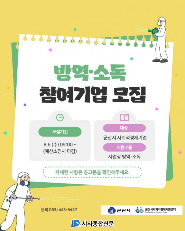 | ±º»ê½Ã, »çȸÀû°æÁ¦ ±â¾÷ ´ë»ó ¹æ¿ª ¼Òµ¶ Áö¿ø»ç¾÷ Âü¿©±â¾÷ ¸ðÁý »çȸÀû°æÁ¦ ±â¾÷ÀÇ ¾ÈÀüÇÑ ±Ù¹«È¯°æÀ» À§ÇÏ¿©¡¦19ÀϱîÁö ¹æ¿ª ¼öÇà±â¾÷°ú Âü¿©±â¾÷ µ¿½Ã ¸ðÁý