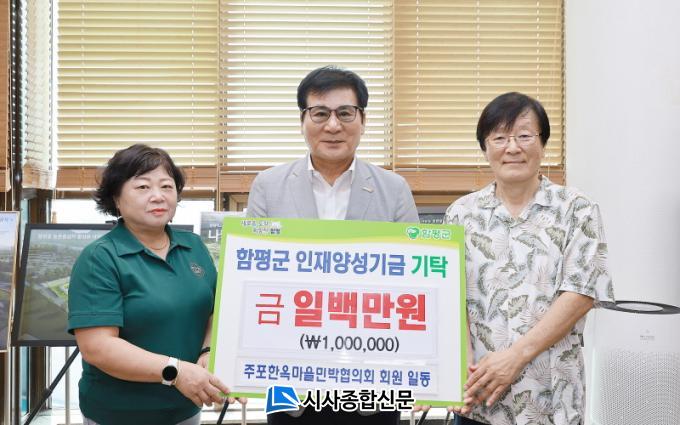 ÇÔÆò±ºÀº 18ÀÏ ¡°¡ãÁÖÆ÷ÇÑ¿Á¸¶À»¹Î¹ÚÇùÀÇȸ(ȸÀå ¼ººÀÁ¦)°ú ¡ã»ï±¤Çʸ§(´ëÇ¥ À̺À±Ù)ÀÌ À̳¯ ÀÎÀç¾ç¼º±â±Ý¿¡ °¢°¢ 100¸¸ ¿ø¾¿ ±âŹÇß´Ù¡±°í ¹àÇû´Ù.