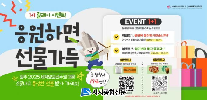 ¸ÕÀú ´ëȸ °ø½Ä ´©¸®Áý(www.gwangju2025.com)¿¡¼´Â 8¿ù20ÀϺÎÅÍ 9¿ù4ÀϱîÁö ¡®µðµ¥ÀÌ(D-day) ÀÀ¿ø ´ñ±Û ¸±·¹ÀÌ À̺¥Æ®¡¯°¡ ¿¸°´Ù. ´ëȸ °³¸·ÀϱîÁö ³²Àº Àϼö¸¦ Ȱ¿ëÇÑ ÀÀ¿ø ´ñ±ÛÀ» ÀÛ¼ºÇØ Âü¿©ÇÒ ¼ö ÀÖÀ¸¸ç, À̺¥Æ® Á¾·á ÈÄ ¿¡¾îÆÌ, ¾Æ¿ô¹é »óǰ±Ç, Ä¿ÇÇÄíÆùÀ» ÃßÃ·ÇØ ÁõÁ¤ÇÑ´Ù.