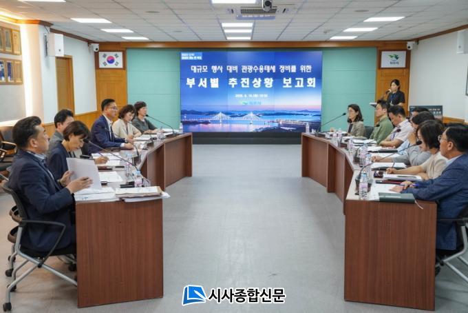 ½Ã´Â 19ÀÏ ½Ãû »óȲ½Ç¿¡¼ ¡®2025 ÇϹݱâ ÁÖ¿äÇà»ç ´ëºñ °ü±¤¼ö¿ëż¼ Á¤ºñ ºÎ¼º° ÃßÁø»óȲ º¸°íȸ¡¯¸¦ °³ÃÖÇϰí, Àü ºÎ¼°¡ Âü¿©ÇÏ´Â Á¾ÇÕ Á¡°Ë ü°è¸¦ º»°Ý °¡µ¿Çß´Ù. À̹ø ȸÀÇ´Â 9¿ù ¿¸®´Â ¸ñÆ÷Ç×±¸ÃàÁ¦¸¦ ½ÃÀÛÀ¸·Î, 10¿ù ³²µµ±¹Á¦¹Ì½Ä»ê¾÷¹Ú¶÷ȸ, ¸ñÆ÷¹®ÈÀ¯»ê¾ßÇà µî ÇϹݱ⠴ë±Ô¸ð °ü±¤Çà»ç¿¡ ´ëºñÇϱâ À§ÇØ ¸¶·ÃµÆ´Ù.