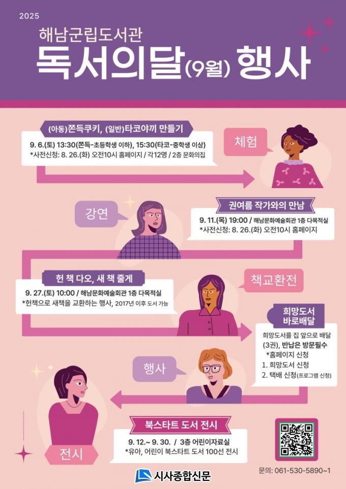 ¶ÇÇÑ µµ¼°ü¿¡ ¾ø´Â Ã¥À» ½ÅûÇϸé Åù輺ñ½º¸¦ ÅëÇØ °¡Á¤À¸·Î ¹è´ÞÇØÁÖ´Â Èñ¸Áµµ¼ ¹è´Þ ¼ºñ½ºµµ ¿î¿µµÈ´Ù. üÇè°ú °¿¬ µî ÀϺΠÇÁ·Î±×·¥Àº 8¿ù 26ÀϺÎÅÍ »çÀü ½ÅûÀÌ ÇÊ¿äÇÏ´Ù. ÀÚ¼¼ÇÑ ÀÏÁ¤ ¹× ½Åû ¹æ¹ýÀº ÇØ³²±º¸³µµ¼°ü ´©¸®Áý ¶Ç´Â ÀüÈ(¢Ï061-530-5890)¸¦ ÅëÇØ È®ÀÎÇÒ ¼ö ÀÖ´Ù.