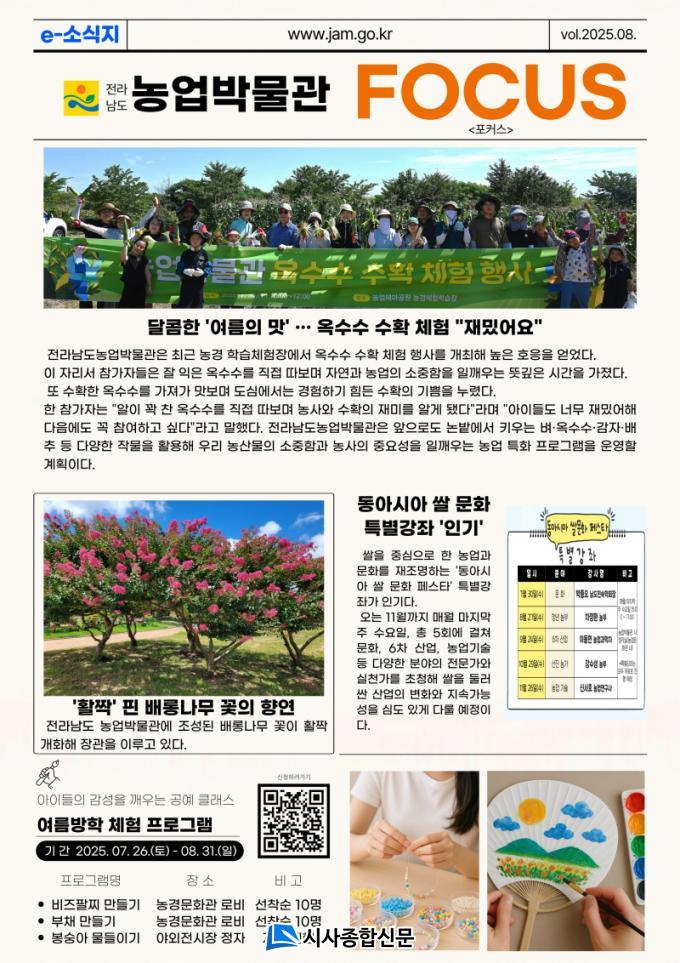 ±è¿Á°æ Àü³²µµ³ó¾÷¹Ú¹°°üÀåÀº ¡°³ó¾÷¹Ú¹°°ü¿¡¼ ÁøÇàÇÏ´Â ´Ù¾çÇÑ Çà»ç¿Í ¼Ò½ÄÀ» °¡Àå ºü¸£°í, È¿°úÀûÀ¸·Î Àü´ÞÇϱâ À§ÇØ e-¼Ò½ÄÁö ¡®FOCUS¡¯¸¦ ¹ßÇàÇÏ°Ô µÆ´Ù¡±¸ç ¡°µµ¹ÎÀÌ ¼Ò½ÄÁö¸¦ ÅëÇØ ³ó¾÷¹Ú¹°°üÀÇ ´Ù¾çÇÑ À̾߱â¿Í ¼Ò½Ä, ÇÁ·Î±×·¥ µîÀ» ÇÔ²² °øÀ¯Çϰí Áñ±â±æ ¹Ù¶õ´Ù¡±°í ¸»Çß´Ù.