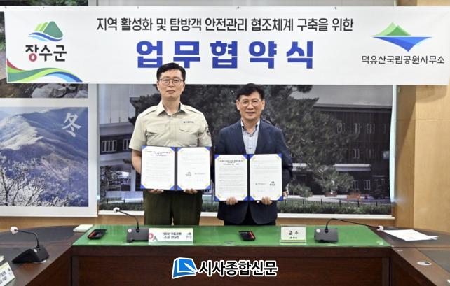 À̳¯ Àå¼ö±ºÃ» ȸÀǽǿ¡¼ ÁøÇàµÈ Çù¾à½Ä¿¡´Â ÃÖÈÆ½Ä Àå¼ö±º¼ö¿Í ¾È±æ¼± ´öÀ¯»ê±¹¸³°ø¿ø»ç¹«¼ÒÀå µî ¾çÃø °ü°èÀÚ 10¿© ¸íÀÌ Âü¼®Çß´Ù. À̹ø Çù¾àÀº ³²´öÀ¯»ê ½Å±Ô ޹æ·Î °³¼³¿¡ µû¸¥ ޹æ·Î ¾ÈÀü°ü¸®¿Í À糡¤ÀçÇØ ¹ß»ý½Ã ½Å¼ÓÇÑ ´ëÀÀ ¹× ޹æ·Î ÀÌ¿ë Ȱ¼ºÈ¸¦ À§ÇÑ ÇùÁ¶ ü°è¸¦ ±¸ÃàÇϱâ À§ÇØ ¸¶·ÃµÆ´Ù.