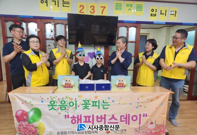 ¡®¿ôÀ½ÀÌ ²ÉÇÇ´Â ÇØÇÇ ¹ö½ºµ¥ÀÌ¡¯»ç¾÷Àº °ü³» Áö¿ª¾Æµ¿¼¾ÅÍ¿¡ ´Ù´Ï´Â Ãë¾à°èÃþ ¾Æµ¿µéÀ» ´ë»óÀ¸·Î ¸Å¿ù »ýÀÏ ÃàÇÏ Çà»ç¸¦ ÁøÇàÇÏ´Â ÇÁ·Î±×·¥ÀÌ´Ù. ÇùÀÇü´Â »ýÀÏÀ» ¸ÂÀº ¾Æµ¿µé¿¡°Ô »ýÀÏ ÄÉÀÌÅ©¿Í ¼±¹° ¼¼Æ®¸¦ Àü´ÞÇϰí ÇÔ²² »ýÀÏ ÃàÇÏ ³ë·¡¸¦ ºÎ¸£¸ç Áñ°Ì°Ô º¸³½´Ù.