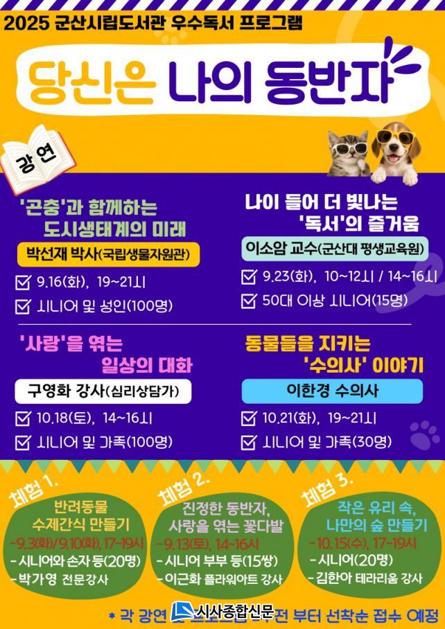 À̹ø °ø¸ð»ç¾÷Àº ¡®µ¶¼ Ȱ¼ºÈ¡¯¸¦ ÁÖÁ¦·Î Àü±¹ 20°³ ÀÚÄ¡´Üü°¡ ¼±Á¤µÆ´Ù. ±º»ê½Ãµµ ½Ã´Ï¾î Æ¯È ¹× ¿Â °¡Á· ´ë»ó µ¶¼ ÇÁ·Î±×·¥ ¿î¿µÀ» ÅëÇØ Áö¿ª µ¶¼¹®È ±â¹Ý È®»ê¿¡ ³ª¼³ ¿¹Á¤ÀÌ´Ù.