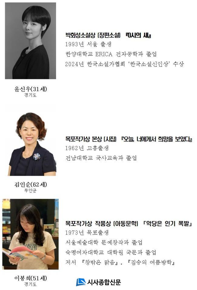 ¸ñÆ÷ Ãâ½ÅÀÌÀÚ ¿ì¸®³ª¶ó ÃÖÃÊÀÇ ¿©¼º ÀåÆí¼Ò¼³°¡ÀÎ ¹ÚȼºÀÇ À̸§À» µý ¹Úȼº¼Ò¼³»ó¿¡´Â À±½Å¿ì(°æ±âµµ) ÀÛ°¡ÀÇ ÀåÆí¼Ò¼³ ¡¸0½ÃÀÇ »õ¡¹°¡ ¼±Á¤µÆ´Ù. À± ÀÛ°¡´Â »ó±Ý 5õ¸¸ ¿øÀ» ¼ö¿©¹ÞÀ¸¸ç, ´ç¼±ÀÛÀº ¢ß¹®ÇаúÁö¼º»ç¿¡¼ ´ÜÇົÀ¸·Î Ãâ°£µÉ ¿¹Á¤ÀÌ´Ù.