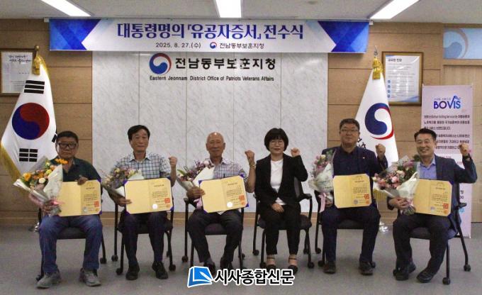 [½Ã»çÁ¾ÇսŹ® = ¿À½ÂÅà ±âÀÚ] ±¹°¡º¸ÈƺΠÀü³²µ¿ºÎº¸ÈÆÁöû(ÁöûÀå Á¤¿µ¼÷)Àº 27ÀÏ ±¹°¡À¯°øÀÚ ¹× °¡Á·, Á÷¿ø µî 20¿©¸íÀÌ Âü¼®ÇÑ °¡¿îµ¥ ±¹°¡À¯°øÀÚ Áõ¼ Àü¼ö½ÄÀ» °³ÃÖÇß´Ù.