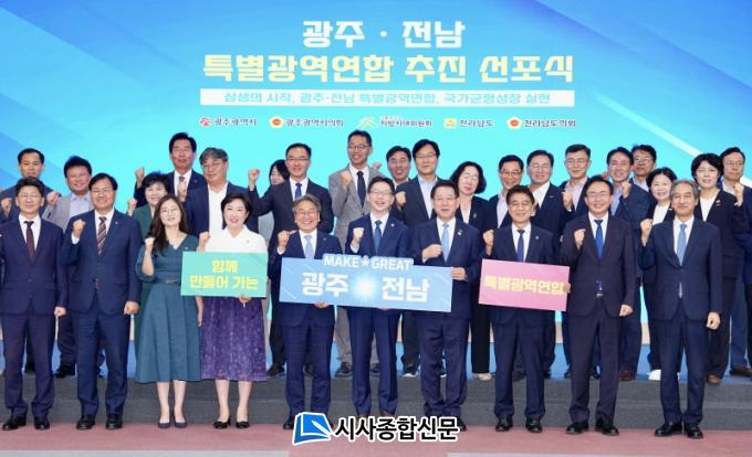 °±âÁ¤ ±¤ÁÖ±¤¿ª½ÃÀåÀº ¡°±¤ÁÖ¡¤Àü³²Æ¯º°ÁöÀÚü´Â ±¤ÁÖ¡¤Àü³²ÀÇ »õ·Î¿î ¼ºÀå±âȸ¸¦ ¿©´Â ¿ª»çÀû Ãâ¹ßÁ¡ÀÌ´Ù¸ç, Àü³²ÀÌ Ä¿Á®¾ß ±¤ÁÖ°¡ Ä¿Áú ¼ö ÀÖ°í, Ãʱ¤¿ªÇù·ÂÀº ¼±ÅÃÀÌ ¾Æ´Ñ »ýÁ¸ÀÇ ¹®Á¦ÀÌ´Ù. ±¹°¡±ÕÇü¹ßÀüÀ¸·Î ´Ù½Ã ¶Ù´Â ´ëÇѹα¹À» À§ÇØ 320¸¸ ½Ã‧µµ¹Î, ÀÌÀç¸í Á¤ºÎ¿Í ÇÔ²² »õ·Î¿î ½Ã´ë¸¦ ¿¾î°¡°Ú´Ù¡±°í ¸»Çß´Ù.