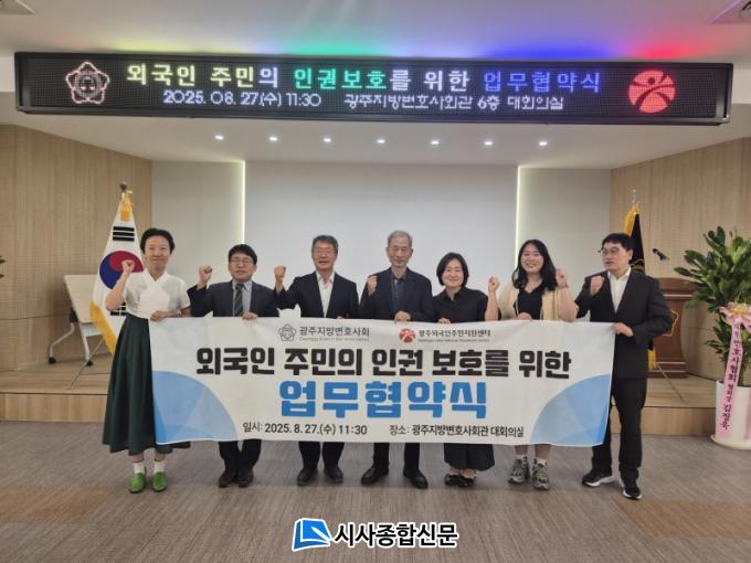 ±¤ÁÖ±¤¿ª½Ã(½ÃÀå °±âÁ¤)´Â 27ÀÏ ±¤ÁÖÁö¹æº¯È£»çȸ°ü¿¡¼ ±¤Áֿܱ¹ÀÎÁÖ¹ÎÁö¿ø¼¾ÅÍ¿Í ±¤ÁÖÁö¹æº¯È£»çȸ ÀÌÁֹιý·üÁö¿ø´ÜÀÌ ¾÷¹«Çù¾àÀ» ü°áÇß´Ù°í ¹àÇû´Ù.