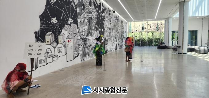 ¿¾ ±¤¾ç¿ª ÅÍ¿¡ °Ç¸³µÈ Àü³²µµ¸³¹Ì¼ú°ü¿¡¼´Â ¡®±â´Ù·Á-»ö¡¯, ¡®Occupy : ¿ì¸®´Â ¿¬°áµÇ°í Á¡À¯ÇÑ´Ù¡¯, ±è¾Æ¿µÀÇ ¡®´Ù°ø¼º °è°î 2¡¯ µîÀÇ °íǰ°Ý Àü½Ã°¡ ¿¸®°í ÀÖ´Ù.