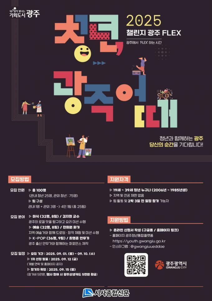 ÀÌ ÇÁ·ÎÁ§Æ®´Â ¡®Ã§¸°Áö ±¤ÁÖ Ç÷º½º(FLEX)¡¯¸¦ ÁÖÁ¦·Î, Âü°¡ÀÚµéÀÌ ¹Ì½Ä¡¤¿¹¼ú¡¤ÄÉÀÌÆË µî ¼¼ °¡Áö ºÐ¾ß °¡¿îµ¥ Çϳª¸¦ ¼±ÅÃÇØ ±¤ÁÖ¸¸ÀÇ ¸Å·ÂÀ» ±íÀÌ Ã¼ÇèÇÒ ¼ö ÀÖµµ·Ï ±âȹµÆ´Ù.
