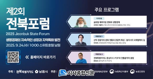 À̹ø À̺¥Æ®´Â ¿À´Â 9¿ù 24ÀÏ ³²¿ø ½ºÀ§Æ®È£ÅÚ¿¡¼ ¿¸®´Â ¡®Á¦2ȸ ÀüºÏÆ÷·³¡¯À» È«º¸Çϱâ À§ÇØ ¸¶·ÃµÆ´Ù. Æ÷·³Àº ¡®»ý¸í°æÁ¦ÀÇ Áö¼ÓÀûÀÎ ¼ºÀå°ú Áö¿ª Æ¯È ¹ßÀü¡¯À» ÁÖÁ¦·Î ±¹³»¿Ü Àü¹®°¡¿Í ±â°ü ´ëÇ¥, µµ¹Î µî 700¿© ¸íÀÌ Âü¿©ÇØ ±âÁ¶¿¬¼³°ú Ưº°¿¬¼³, ÁÖÁ¦ ¼¼¼Ç µîÀ» ÁøÇàÇÑ´Ù.