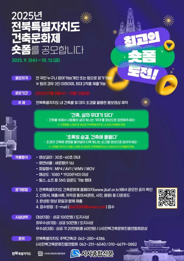 Âü°¡ ÀÚ°ÝÀº ´ëÇѹα¹ ±¹¹Î ´©±¸³ª °¡´ÉÇϸç, °³ÀÎ ¶Ç´Â 3ÀÎ ÀÌÇÏ ÆÀ ´ÜÀ§·Î Âü¿©ÇÒ ¼ö ÀÖ´Ù. 1ÀÎ(ÆÀ)´ç ÃÖ´ë 2ÀÛǰ±îÁö ÃâǰÇÒ ¼ö ÀÖÀ¸¸ç, ÀÀ¸ðÀÚ´Â °ÇÃ๮ÈÁ¦ °ø½Ä ȨÆäÀÌÁö(www.jbaf.or.kr)¿¡¼ Âü°¡½Åû¼¿Í ±âȹ¾È µîÀ» ³»·Á¹Þ¾Æ ¿Ï¼ºµÈ ¿µ»óÀ» º»ÀÎ SNS °èÁ¤(À¯Æ©ºê ¼îÃ÷, ÀνºÅ¸±×·¥ ¸±½º µî)¿¡ ¾÷·ÎµåÇÑ ÈÄ ¼·ù¿Í ÇÔ²² À̸ÞÀÏ·Î Á¦ÃâÇÏ¸é µÈ´Ù.