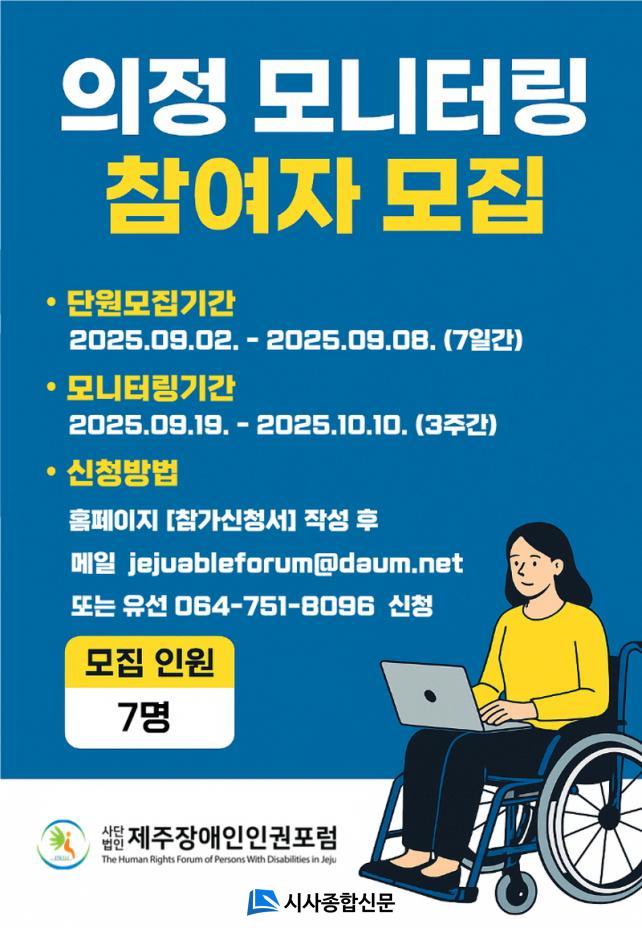 [½Ã»çÁ¾ÇսŹ® = °í¼º¹Î ±âÀÚ] »ç´Ü¹ýÀÎ Á¦ÁÖÀå¾ÖÀÎÀÎ±ÇÆ÷·³(´ëÇ¥ ÃÖÈñ¼ø)Àº 9¿ù 8ÀϱîÁö '2025³â Àå¾ÖÀÎ Á¤Ã¥ ÀÇÁ¤ ¸ð´ÏÅ͸µ' ´Ü¿øÀ» ¸ðÁýÇÑ´Ù°í ¹àÇû´Ù.