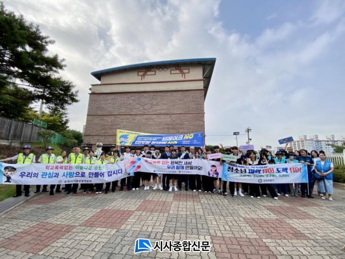 À̳¯ Çà»ç´Â ¼øÃµ±³À°Áö¿øÃ»À» ºñ·ÔÇØ ¼øÃµ°æÂû¼, ¼øÃµ½Ã ÀÚÀ²¹æ¹ü ¿¬ÇÕ´ë, û³âȸÀÇ¼Ò µî Áö¿ª À¯°ü±â°ü°ú ¼øÃµ¿ÕÀÇÁßÇб³ ÇлýÀÚġȸ°¡ ÇÔ²² Âü¿©ÇØ Àǹ̸¦ ´õÇß´Ù. Âü¿© ÇлýµéÀº ÇÇÄÏÀ» µé°í ±¸È£¸¦ ¿ÜÄ¡¸ç ¶Ç·¡ Ä£±¸µé¿¡°Ô Çб³Æø·Â ¿¹¹æÀÇ Á߿伺À» ¾Ë·È´Ù.
