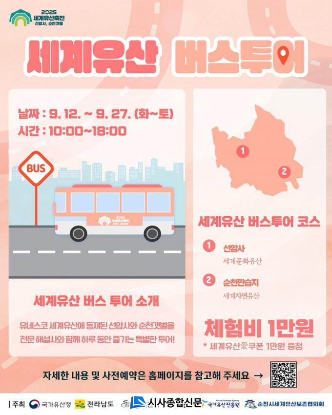 À̹ø ¹ö½ºÅõ¾î´Â ¼¼°è¹®ÈÀ¯»ê ¼±¾Ï»ç¿Í ¼¼°èÀÚ¿¬À¯»ê ¼øÃµ°¹¹úÀ» ÇÏ·ç¿¡ ¸ðµÎ ޹æÇÏ´Â ÀÏÁ¤À¸·Î ¸ÅÁÖ È¿äÀϺÎÅÍ Åä¿äÀϱîÁö ¿ÀÀü 10½Ã 10ºÐ, ¼øÃµ¿ª ½ÃƼÅõ¾î ¹ö½º ½Â°Àå¿¡¼ Ãâ¹ßÇÑ´Ù.