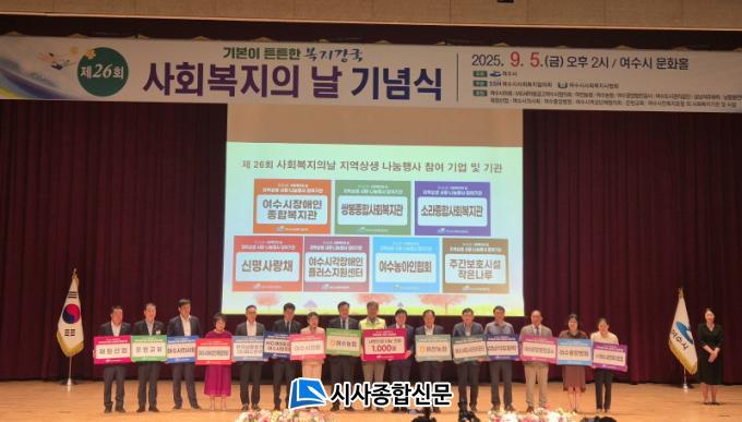 [½Ã»çÁ¾ÇսŹ® = ¿À½ÂÅà ±âÀÚ] ¿©¼ö½Ãµµ½Ã°ü¸®°ø´Ü(ÀÌ»çÀå ±èÀ¯È)Àº Á¦26ȸ »çȸº¹ÁöÀÇ ³¯(¸Å³â 9¿ù 7ÀÏ)À» ¸ÂÀÌÇÏ¿© Ãß¼® ¸íÀýÀ» ¾ÕµÐ ¼Ò¿Ü°èÃþÀ» Áö¿øÇϱâ À§ÇØ ¿©¼ö½Ã»çȸº¹ÁöÇùÀÇȸ¿¡ ½Ò 30Æ÷´ë¸¦ ±âºÎÇÏ°í ³ª´® Çà»ç¿¡ Âü¿©Çß´Ù°í 5ÀÏ ¹àÇû´Ù.
