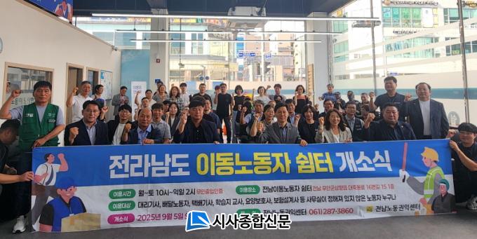 Àü³²µµ À̵¿³ëµ¿ÀÚ Àü¿ë ½°ÅÍ °³¼Ò½Ä¿¡´Â ¼Àº¼ö Àü³²µµ ÀÏÀÚ¸®ÅõÀÚÀ¯Ä¡±¹Àå, Â÷¿µ¼ö¡¤¹Ú¹®¿Á¡¤±è¹Ì°æ¡¤¼Õ³²ÀÏ Àü³²µµÀÇ¿ø, ¹«¾È±º, °í¿ë³ëµ¿ºÎ ¸ñÆ÷Áöû, À̵¿³ëµ¿ÀÚ ´Üü ´ëÇ¥ µî 30¿© ¸íÀÌ Âü¼®Çß´Ù.