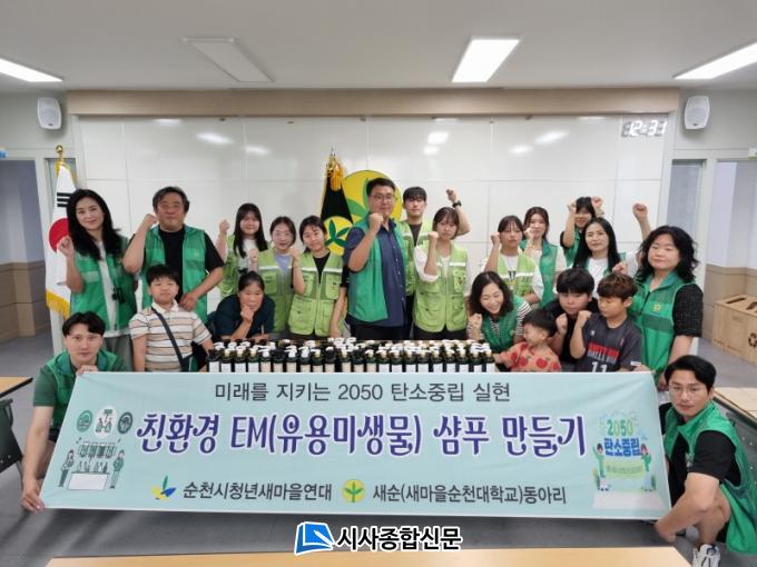 EM(Effective Microorganisms, À¯¿ë¹Ì»ý¹°)À» Ȱ¿ëÇÑ ¼¤Çª ¸¸µé±â´Â ÇÕ¼º°è¸éȰ¼ºÁ¦ »ç¿ëÀ» ÁÙÀ̰í, ÇǺο¡ ¾ÈÀüÇϸç, ÇÏõ ¹× Åä¾ç ¿À¿°À» ÁÙÀÏ ¼ö Àִ ģȯ°æ ´ë¾ÈÀ¸·Î ÁÖ¸ñ¹Þ°í ÀÖ´Ù. À̹ø Ȱµ¿¿¡ Âü¿©ÇÑ Ã»³âµé°ú ´ëÇлýµéÀº Á÷Á¢ Àç·á¸¦ ¹èÇÕÇÏ°í ¿Ï¼ºµÈ EM¼¤Çª¸¦ ÇÔ²² ³ª´©¸ç, ÀÛÀº ½ÇõÀÌ Å« º¯È¸¦ ¸¸µç´Ù´Â Á¡À» üÇèÇß´Ù.