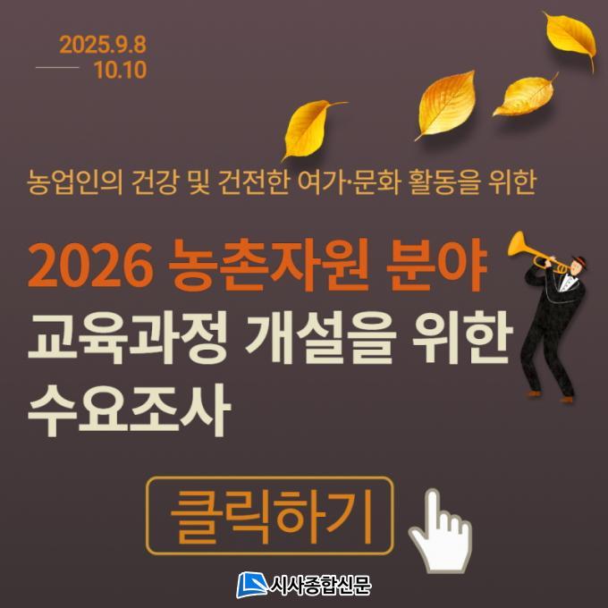 [½Ã»çÁ¾ÇսŹ® = ¿À½ÂÅà ±âÀÚ] ȼø±º(±º¼ö ±¸º¹±Ô)Àº 2026³âµµ ³óÃÌÀÚ¿ø ºÐ¾ß ±³À°°úÁ¤ °³¼³¿¡ ¾Õ¼ ÁֹεéÀÇ ÀǰßÀ» Àû±Ø ¹Ý¿µÇϱâ À§ÇØ 9¿ù 8ÀϺÎÅÍ 10¿ù 10ÀϱîÁö 4ÁÖ°£ ¼ö¿ä Á¶»ç¸¦ ÁøÇàÇÑ´Ù°í ¹àÇû´Ù.