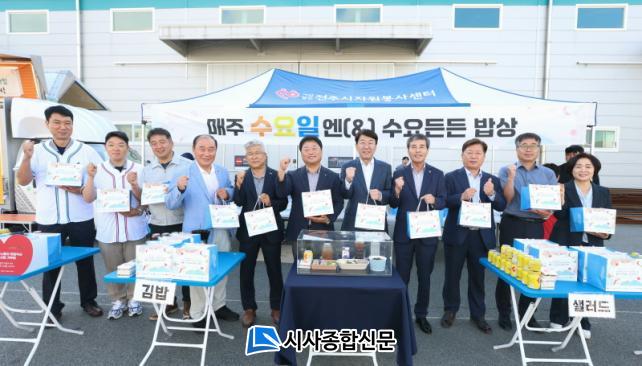 ƯÈ÷ À̳¯ ¾ÆÄ§ ½Ä»ç Áö¿ø¿¡´Â À̿ ÀüÁֽûê¾÷´ÜÁöÇùÀÇȸÀå°ú ¹Úº´Ã¶ NH³óÇù ÀüºÏÁöºÎ ³ëµ¿Á¶ÇÕ À§¿øÀå, ÇϾçÁø NH³óÇùÀºÇà ÀüÁÖ½ÃÁöºÎÀå, Á¤Âù¸ð ¢ßÈÞºñ½º ÆÄÆ®Àå, ±è¹Îö HSÈ¿¼ºÃ·´Ü¼ÒÀç ÆÀÀå µî ÈÄ¿ø±â¾÷¡¤´Üü 5¸í°ú À±¹æ¼· (Àç)ÀüÁֽú¹ÁöÀç´Ü ÀÌ»çÀå, ¾ç¼ø±â Çѱ¹¿Ü½Ä¾÷Áß¾Óȸ ´öÁø±¸ÁöºÎÀå µî Çù¾à´Üü°¡ µ¿ÂüÇß´Ù.