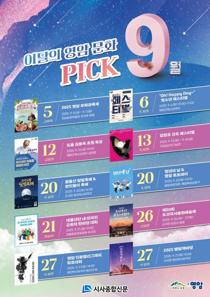 ÀÌ´Þ 5~7ÀÏ Àü³²³ó¾÷¹Ú¹°°ü ÀÏ¿ø¿¡¼ ¿¸° ¡®2025 ¿µ¾Ï ¹«È°úÃàÁ¦¡¯´Â, ¸¹Àº °ü±¤°´ÀÌ Ã£À¸¸ç ¿µ¾ÏÀÌ ´ëÇѹα¹ ¹«È°úÀÇ º»°íÀåÀÓÀ» È®ÀÎÇØ Áá´Ù. 6ÀÏ ¿µ¾Ï±ºÃ»¼Ò³â¼ö·Ã°ü¿¡¼ ¿¸° û¼Ò³â Æä½ºÆ¼¹ú ¡®¿À ÇØÇÇ µ¥ÀÌ(Oh! Happy Day)¡¯ ¿ª½Ã û¼Ò³âÀÌ ±âȹ¡¤¿î¿µÇÑ ÇÁ·Î±×·¥À¸·Î È£ÀÀÀ» ¾òÀ¸¸ç ¼ºÈ²À» ÀÌ·ð´Ù.