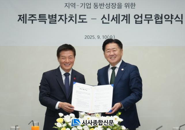 Á¦ÁÖµµ´Â 10ÀÏ ¿ÀÈÄ ¼¿ï ¼Ãʱ¸ ½Å¼¼°è¹éÈÁ¡ º»»ç¿¡¼ Áö¿ª ÀÚ¿øÀ» Ȱ¿ëÇÑ À¯Åë¸Á È®´ë, °øµ¿ ¸¶ÄÉÆÃ, ·ÎÄà °ü±¤ÀÚ¿ø Ȱ¿ë Çù·Â µîÀ» ÁÖ¿ä ³»¿ëÀ¸·Î ÇÏ´Â ¾÷¹«Çù¾àÀ» ü°áÇß´Ù. Çù¾à½Ä¿¡´Â ¿À¿µÈÆ Á¦ÁÖµµÁö»ç¿Í ¹ÚÁÖÇü ¢ß½Å¼¼°è ´ëÇ¥ÀÌ»ç µî ¾ç ±â°ü ÁÖ¿ä ÀλçµéÀÌ Âü¼®Çß´Ù.