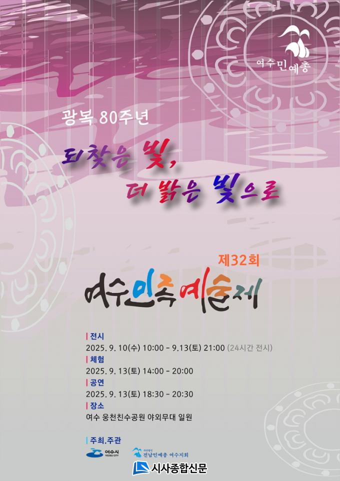 ±èÄ¥¼± ¿©¼öÁöȸÀåÀº ¡°Áøº¸Àû ¿¹¼úÁ¤½ÅÀ» ¹ÙÅÁÀ¸·Î Áö¿ª ¹®ÈºÐ±Ç°ú ¹®È¹ÎÁÖÁÖÀÇ ¹ßÀüÀ» À§ÇØ ³ë·ÂÇØ ¿Â 32³âÀÇ ÀüÅëÀÌ À̹ø ÃàÁ¦¸¦ ÅëÇØ ´õ¿í ºûÀ» ¹ßÇÏ±æ ¹Ù¶õ´Ù¡±¸ç ¡°Æ¯È÷ ±¤º¹ 80ÁÖ³âÀ» ¸Â¾Æ ¡®µÇãÀº ºû, ´õ ¹àÀº ºûÀ¸·Î¡¯¶ó´Â ÁÖÁ¦·Î ¿¸®´Â À̹ø ¿¹¼úÁ¦°¡ ½Ã¹Î ¸ðµÎ¿¡°Ô ÀÇ¹Ì ÀÖ´Â ½Ã°£ÀÌ µÇ±â¸¦ ±â´ëÇÑ´Ù¡±°í ¸»Çß´Ù.