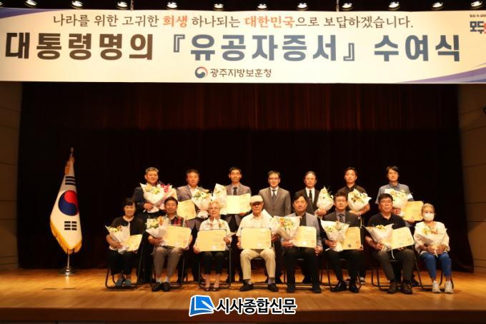 [½Ã»çÁ¾ÇսŹ® = ¿À½ÂÅà ±âÀÚ] ±¤ÁÖÁö¹æº¸ÈÆÃ»(ûÀå ±è¼®±â)Àº 11ÀÏ Á¤ºÎ±¤ÁÖÁö¹æÇÕµ¿Ã»»ç ¼º°ü½Ä½Ç¿¡¼ ¿¸° ¡®´ëÅë·É ¸íÀÇ À¯°øÀÚ Áõ¼¡¯ ¼ö¿©½Ä¿¡¼ ±¹°¡À¯°øÀÚ ¹× À¯Á· ¿´Ù¼¸¸íÀ» ÃÊûÇÏ¿© »õÁ¤ºÎ ¡®´ëÅë·É¸íÀÇ À¯°øÀÚÁõ¼¡¯¸¦ ¼ö¿©ÇÏ¿´´Ù.