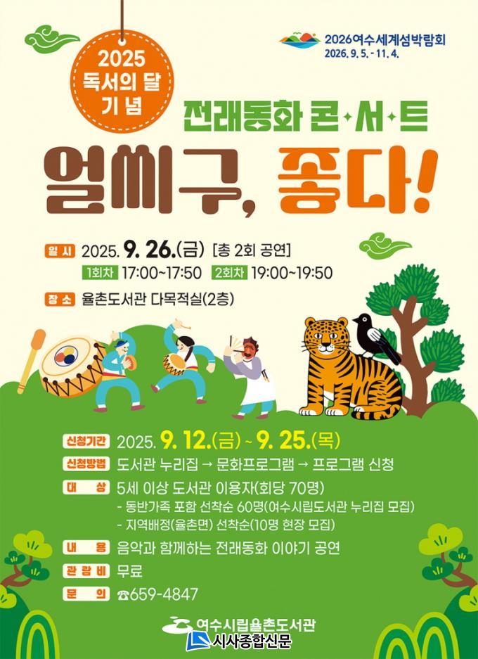 | ¿©¼ö½Ã, À²Ã̵µ¼°ü¼ Àü·¡µ¿È ÄܼƮ ¡®¾ó¾¾±¸, ÁÁ´Ù!¡¯ ¿î¿µ 2025³â µ¶¼ÀÇ ´Þ ±â³ä ¹«·á °ø¿¬¡¦ ¿Â¶óÀΡ¤ÇöÀå Á¢¼ö ÁøÇà |