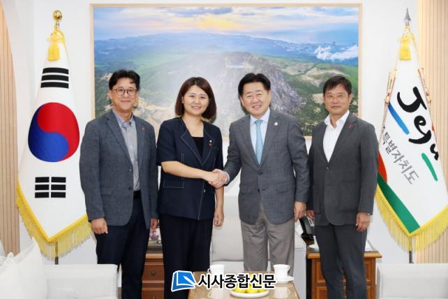 ±¹È¸ ¹®ÈüÀ°°ü±¤À§¿øÈ¸ ¼Ò¼ÓÀÎ ¼Õ¼Ö ÀÇ¿øÀº À̳¯ Áøº¸´ç ±è¸íÈ£ Á¦ÁÖµµ´ç À§¿øÀå, ¾ç¿µ¼ö Á¦ÁÖµµÀÇȸ ÀÇ¿ø°ú ÇÔ²² µµÃ»À» ã¾Æ Á¦ÁÖÁö¿ª ¹ßÀü¹æ¾ÈÀ» ³íÀÇÇß´Ù.