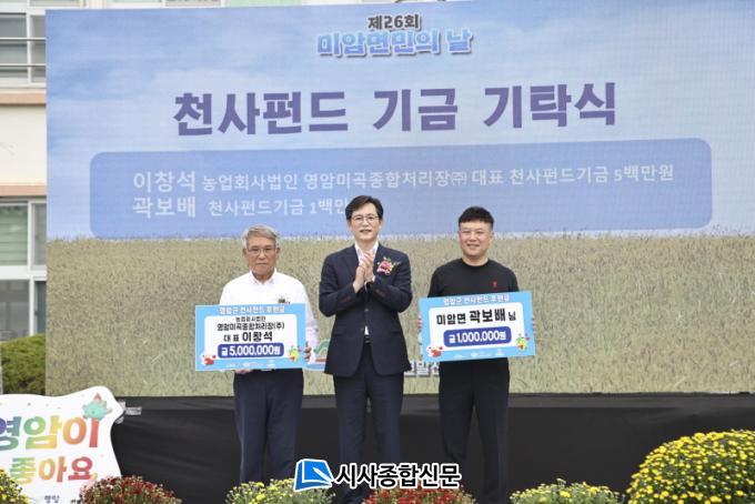[½Ã»çÁ¾ÇսŹ® = ¿À½ÂÅà ±âÀÚ] ÀÌâ¼® ¿µ¾Ï¹Ì°îó¸®Àå(ÁÖ) ´ëÇ¥¿Í ¹Ì¾Ï¸é °ûº¸¹è ¾¾°¡, 12ÀÏ ¿µ¾Ï±º »çȸÀû ±ÝÀ¶ õ»çÆÝµå¿¡ °¢°¢ 500¸¸¿ø°ú 100¸¸¿øÀ» ±âºÎÇß´Ù.