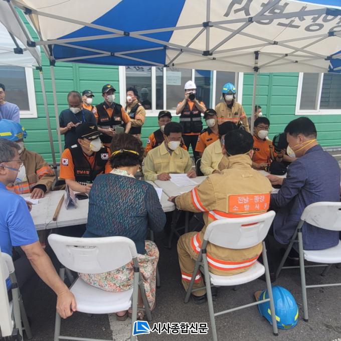 ±¤¾ç¼Ò¹æ¼´Â ÈÀç ¹ß»ý ÈÄ ÇöÀå ÁöÈÖ¼Ò¸¦ ¼³Ä¡Çϰí, Àåºñ¸¦ ÅõÀÔÇØ ÁøÈ ÁßÀ̸ç, ÇöÀç ºñ»ó ´ëÀÀ 1´Ü°è¸¦ ¹ß·ÉÇÑ »óÅ´Ù.