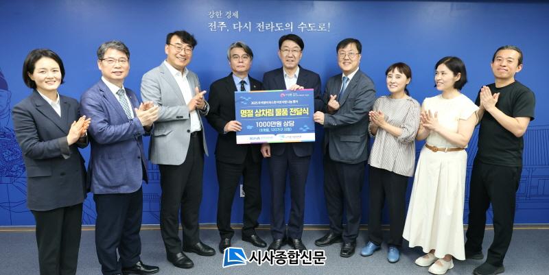 ÀüÁÖ½ÃÀÇ»çȸ(ȸÀå ¹Ú¿ëÇö)¿Í ÀÌ¿ô»ç¶ûÀÇ»çȸ(ȸÀå °°æ¹ü)´Â 17ÀÏ ÀüÁÖ½ÃÀå½ÇÀ» ã¾Æ ½Ò°ú »ýÇÊǰ µî 1000¸¸ ¿ø »ó´çÀÇ Ãß¼® »óÂ÷¸²¿ë ¹°Ç°À» ÀüÁֽÿ¡ ±âÁõÇß´Ù. À̳¯ Àü´Þ½Ä¿¡´Â ¿ì¹ü±â ÀüÁÖ½ÃÀå°ú ÀüÁÖ½ÃÀÇ»çȸ¡¤ÀÌ¿ô»ç¶ûÀÇ»çȸ °ü°èÀÚ 6¸íÀÌ Âü¼®Çß´Ù.