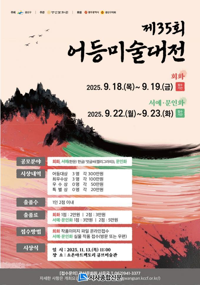 ¾îµî¹Ì¼ú´ëÀüÀº ±¤»ê±¸°¡ ÁÖÃÖÇÏ°í ±¤»ê¹®È¿øÀÌ ÁÖ°üÇÏ¸ç ±¹³»¿Ü ¿¹¼úÀεéÀÇ Âü¿©¸¦ ÅëÇØ ´Ù¾çÇÑ ÀÛǰÀ» ¼±º¸ÀδÙ.
