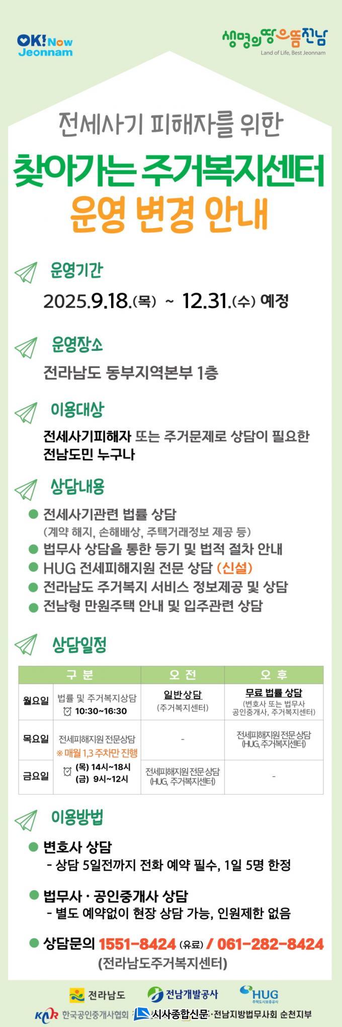 ƯÈ÷ Àü³²µµ°¡ Áö³ 1³â µ¿¾È ±¹Åä±³ÅëºÎ¿Í ÁÖÅõµ½Ãº¸Áõ°ø»ç¿¡ Àü¹®Àη ÆÄ°ßÀ» Áö¼ÓÀûÀ¸·Î ¿äÃ»ÇØ ÁÖÅõµ½Ãº¸Áõ°ø»ç(HUG)ÀÇ Àü¼¼»ç±âÇÇÇØ Àü´ã±â±¸ÀÎ ¼¿ï °æ¡¤°ø¸ÅÁö¿ø¼¾ÅÍ Àü¹®Àηµµ »õ·Ó°Ô Âü¿©ÇÑ´Ù.