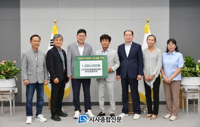 [½Ã»çÁ¾ÇսŹ® = ¿À½ÂÅà ±âÀÚ] ´ã¾ç±ºÀº (»ç)Çѱ¹Àü¹®ÀÓ¾÷ÀÎÇùȸ ´ã¾ç±ºÇùÀÇȸ°¡ Ãß¼®À» ¾ÕµÎ°í ¾î·Á¿î ÀÌ¿ôÀ» À§ÇØ Çö±Ý 100¸¸ ¿øÀ» ±âŹÇß´Ù°í 23ÀÏ ¹àÇû´Ù.