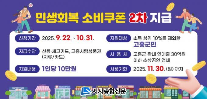 2Â÷ Áö±ÞºÐÀº ¼Òµæ »óÀ§ 10%¸¦ Á¦¿ÜÇÑ ¸ðµç °íÈﱺ¹Î¿¡°Ô 10¸¸ ¿øÀÌ Áö±ÞµÇ¸ç, ½Åû ±â°£Àº 9¿ù 22ÀϺÎÅÍ 10¿ù 31ÀϱîÁö´Ù. 1Â÷¿Í µ¿ÀÏÇÏ°Ô ½Å¿ë¡¤Ã¼Å©Ä«µå ¹× ¼±ºÒÄ«µå, °íÈï»ç¶û»óǰ±Ç Áß Çϳª¸¦ ¼±ÅÃÇØ ¹ÞÀ» ¼ö ÀÖ´Ù.