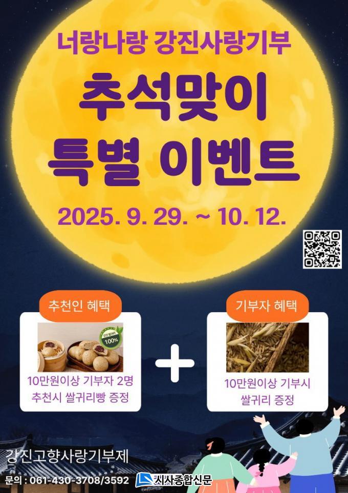 Âü¿©¹æ¹ýÀº ¿À´Â 29ÀϺÎÅÍ 10¿ù 12ÀϱîÁö ¡®°íÇâ»ç¶ûeÀ½¡¯À» ÅëÇØ °Áø±º¿¡ 10¸¸¿ø ÀÌ»ó ±âºÎÀÚ¸¦ 2¸í ÀÌ»ó ÃßõÇϰí, °Áø±ºÃ» Ãѹ«°ú¿¡ ¸ÞÀÏ(todaykph88@korea.kr) ¶Ç´Â ÀüÈ(061-430-3708/3592) ½ÅûÇÏ¸é µÈ´Ù.