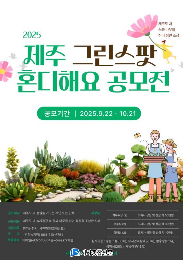 Á¦ÁÖÀÇ Æ¯»ö ÀÖ´Â Á¤¿øÀ̳ª ³ì»ö°ø°£ÀÎ ¡®Á¦ÁÖ ±×¸°½ºÆÌ¡¯À» ´ãÀº »çÁøÀÌ¸é ´©±¸³ª °ø¸ð¿¡ Âü¿© °¡´ÉÇÏ´Ù. °ø¸ðÀüÀº °³ÀÎ ¶Ç´Â ´Üü ºÎ¹®À¸·Î ³ª´µ¸ç, Âü°¡½Åû¼¿Í »çÁø ¿øº»À» 10¿ù 21ÀÏ(È)±îÁö À̸ÞÀÏ(