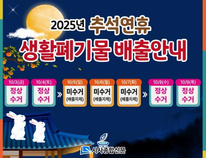 [½Ã»çÁ¾ÇսŹ® = ¿À½ÂÅà ±âÀÚ] °íÈﱺ(±º¼ö °ø¿µ¹Î)Àº ¿À´Â 10¿ù 3ÀϺÎÅÍ 9ÀϱîÁö ¿¬ÈޱⰣ »ýȰÆó±â¹° ¼ö°Å¸¦ À§ÇØ ¡®2025³âµµ Ãß¼®¿¬ÈÞ »ýȰÆó±â¹° ¼ö°Å °ü¸®´ëÃ¥¡¯À» ¼ö¸³Çß´Ù°í ¹àÇû´Ù.