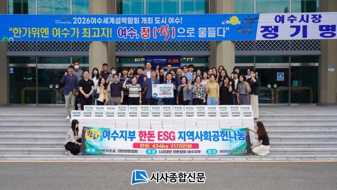 [½Ã»çÁ¾ÇսŹ® = ¿À½ÂÅà ±âÀÚ] ¿©¼ö½Ã(½ÃÀå Á¤±â¸í)´Â (»ç)´ëÇÑÇѵ·Çùȸ ¿©¼öÁöºÎ(ÁöºÎÀå ¼Çмö)°¡ Áö³ 26ÀÏ Ãß¼®À» ¸Â¾Æ ESG Áö¿ª»çȸ °øÇå Ȱµ¿ÀÇ ÀÏȯÀ¸·Î 500¸¸ ¿ø »ó´çÀÇ Çѵ· 434kgÀ» ±âŹÇß´Ù°í ¹àÇû´Ù.