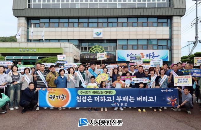 [½Ã»çÁ¾ÇսŹ® = ¿À½ÂÅà ±âÀÚ] ÀåÈﱺÀº 27ÀÏ Ãß¼® ¸íÀýÀ» ¾ÕµÎ°í Á¤³²Áø ÀåÈï Åä¿ä½ÃÀå ¾Õ¿¡¼ ¡®Ã»·Å ½Çõ Ä·ÆäÀΡ¯À» ÆîÃÆ´Ù.