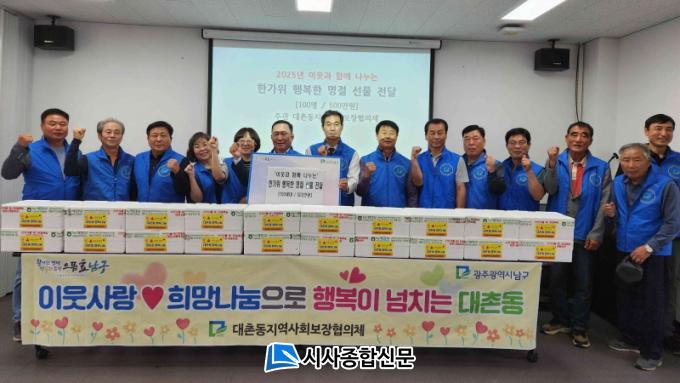 [½Ã»çÁ¾ÇսŹ® = ¿À½ÂÅà ±âÀÚ] ±¤ÁÖ ³²±¸ ´ëÃ̵¿Áö¿ª»çȸº¸ÀåÇùÀÇü(À§¿øÀå ¼±Á¾À²)´Â ÃÖ±Ù ¹ÎÁ· °íÀ¯ÀÇ ¸íÀý Ãß¼®À» ¸Â¾Æ ¡®ÇѰ¡À§ Çູ°¡µæ ¸íÀý¼±¹°¡¯ ³ª´® Çà»ç¸¦ ÁøÇàÇϰí Áö¿ª ³» ¾î·Á¿î ÀÌ¿ô 100¼¼´ë¿¡ µû¶æÇÑ Á¤À» Àü´ÞÇß´Ù.