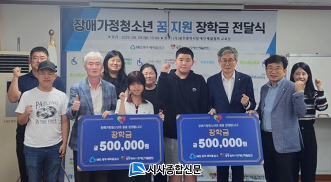 À̹ø Àü´Þ½ÄÀº MG±¤ÁÖ»õ¸¶À»±Ý°í(ÀÌ»çÀå Á¤°æµµ)ÀÇ ÈÄ¿øÀ¸·Î ¸¶·ÃµÇ¾úÀ¸¸ç, Àå¾Ö°¡Á¤Ã»¼Ò³âµéÀÇ Çо÷ Áö¼Ó°ú ¹Ì·¡ ¼³°è¸¦ Áö¿øÇϱâ À§ÇØ ÃßÁøµÆ´Ù. ¿ÃÇØ ÀåÇлýÀ¸·Î´Â ±¤ÁÖ¼öÇǾƿ©ÀÚ°íµîÇб³ 2Çгâ ÇÑÈñÁø Çлý(Àå·¡Èñ¸Á Åë¹ø¿ª»ç)°ú ¿î¸²ÁßÇб³ 1Çг⠼ÀÎ±Ô Çлý(Àå·¡Èñ¸Á °æÂû)ÀÌ ¼±¹ßµÇ¾î °¢°¢ 500,000¿øÀÇ ÀåÇбÝÀ» Àü´Þ¹Þ¾Ò´Ù.